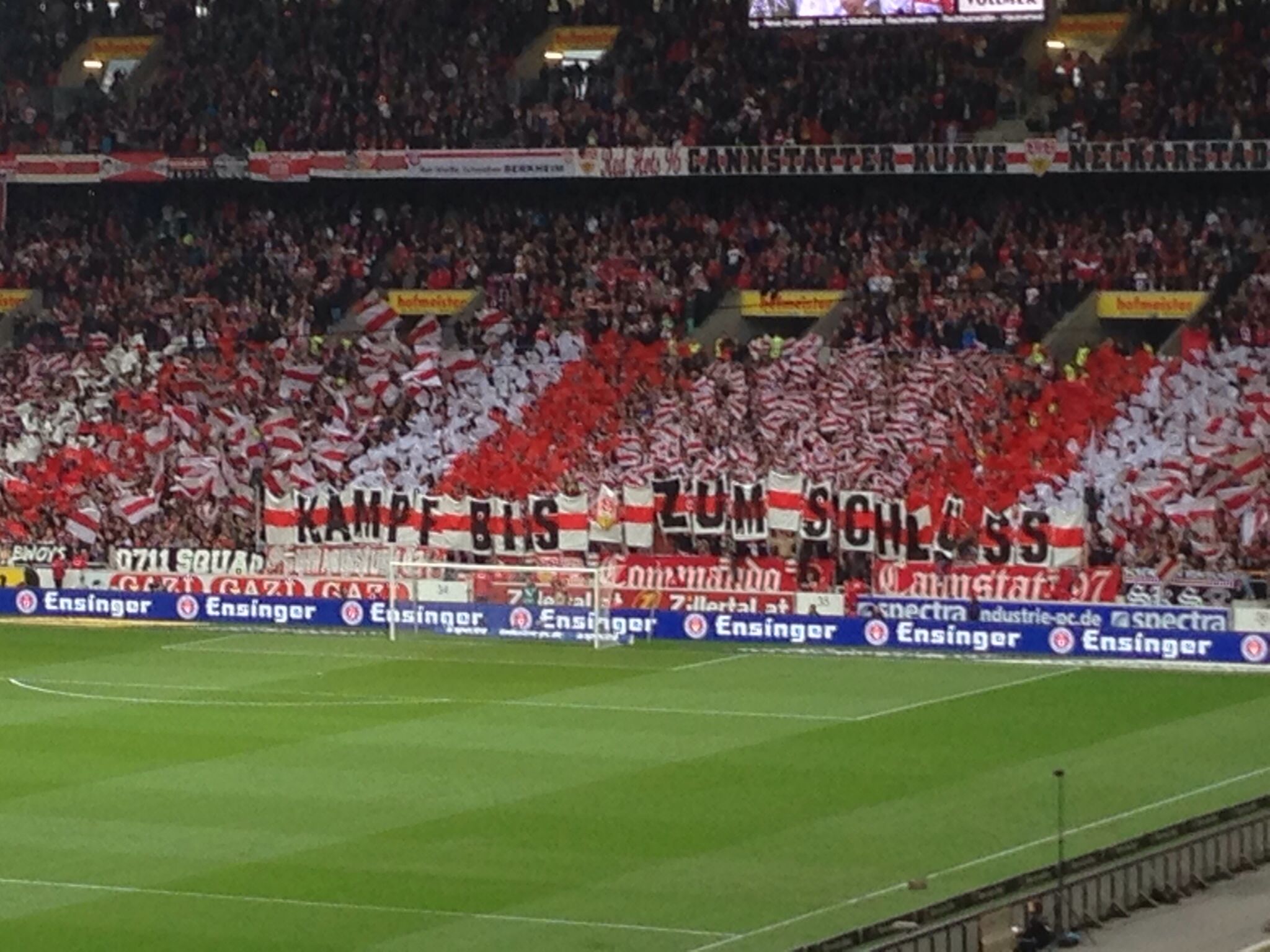 Lag es am Vorabend, oder an der nötigen Konzentration????? Weiter ging es mit der Wanderung rund um diverse Gebäude, zum Eingangsbereich für die Gästefans. Schnell die beiden Eintrittskarten unter Ticketpreis an HSV-Fans abgegeben, und dann ab ins umgebaute VFB Stadion. Enttäuschung pur, ja die Aschenbahn war verschwunden, aber gerade im Gästebereich hatte sich wenig bis gar nichts getan. Aus dem Sitzplatz wurde schnell ein Stehplatz, also der ganz normale Wahnsinn. Zum Spiel: