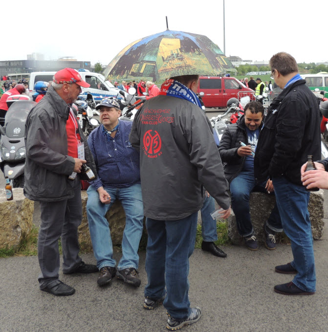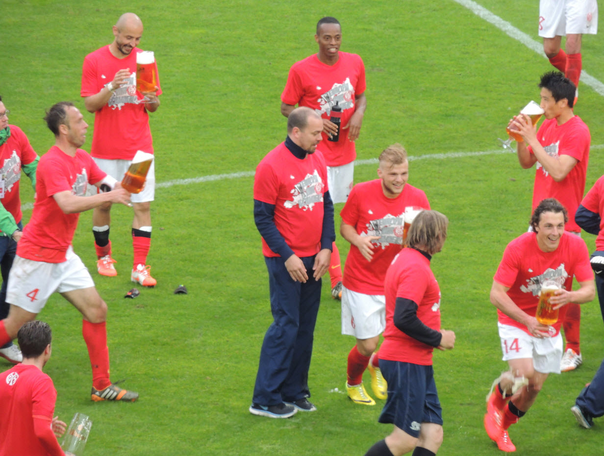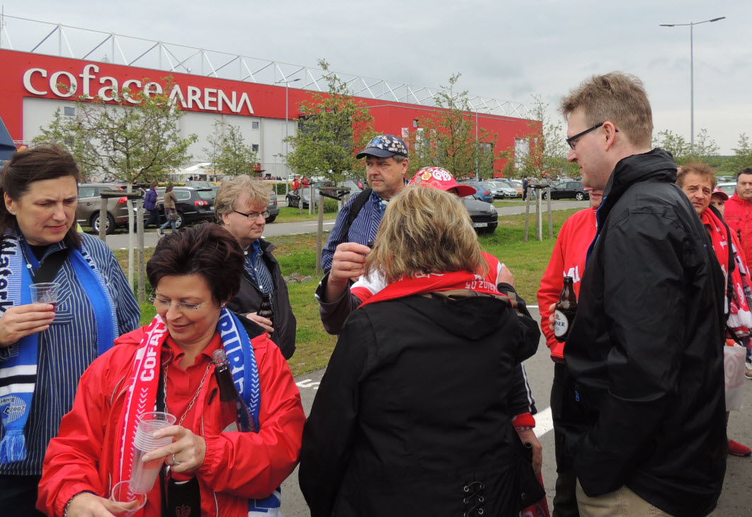 Wir HSV-Fans haben gesungen und angefeuert, also wieder einmal alles gegeben. Mainz konnte singen und lachen, da sie in der kommenden Saison durch Europa reisen. Der Reihe nach Am Samstag machten wir uns in Mannschaftsstärke von Norden, Westen und Osten auf in den Südwesten. Pünktlich wie die Maurer waren sowohl die Bahnfahrer als auch die Autofahrer in unserem Hotel, welches fest in Hamburger Hand war. Aufgrund eines kleinen Missgeschicks wurden aus den geplanten 4 DZ und 3 EZ nunmehr 11 EZ und nach Beschlag der Zimmer machten wir uns schnurstracks auf den Weg zum Stadion.
