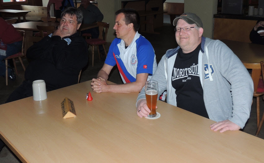 Hier stießen Zigge, der selbstständig aus Berlin anreiste, und Rainer aus Mürzbach zu uns. Nach Einnahme von kulinarischen Kostbarkeiten haben wir uns im großen Saal der Sonne auf einer Großbildleinwand das Pokalfinale mit gefühlten 40 Bayernfans und 2 im BVB-Trikot angesehen. Nachdem