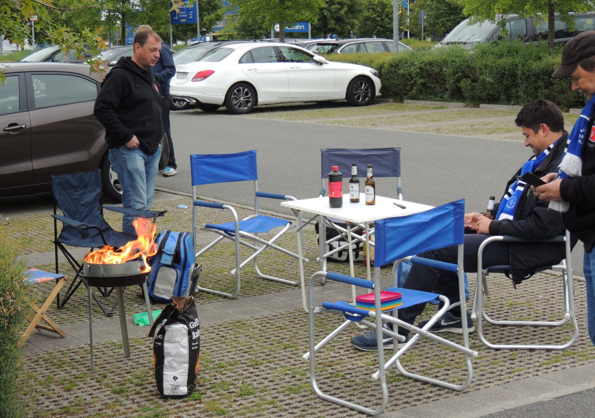 Ausklingen lassen haben wir den Abend dann in der Küche unserer Ferienwohnung bei einer Flasche Bacardi. Diskutiert wurde naturgemäß über das morgige Spiel. Über die 2.Liga mit den freundlichen Anstoßzeiten und Auswärtsfahrten in die Provinz wollten wir uns jedoch nicht befassen. Einig waren wir uns nur das wir alle auf jeden Fall auch in der neuen Saison unsere Dauerkarten wieder nehmen würden. Gegen 2.00 Uhr waren wir alle im Bett. Am Spieltag trafen wir uns um 11.00 Uhr bei Martina und Rainer zum Frühstück und anschließenden Grillen. Also Frühstück und Mittag gleich hintereinander !! Vielen Dank an