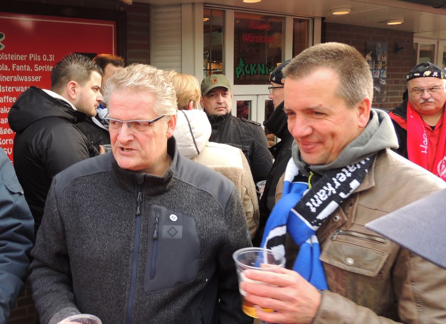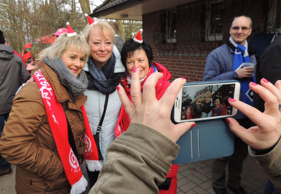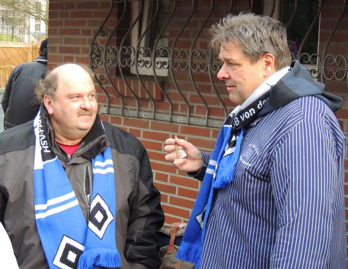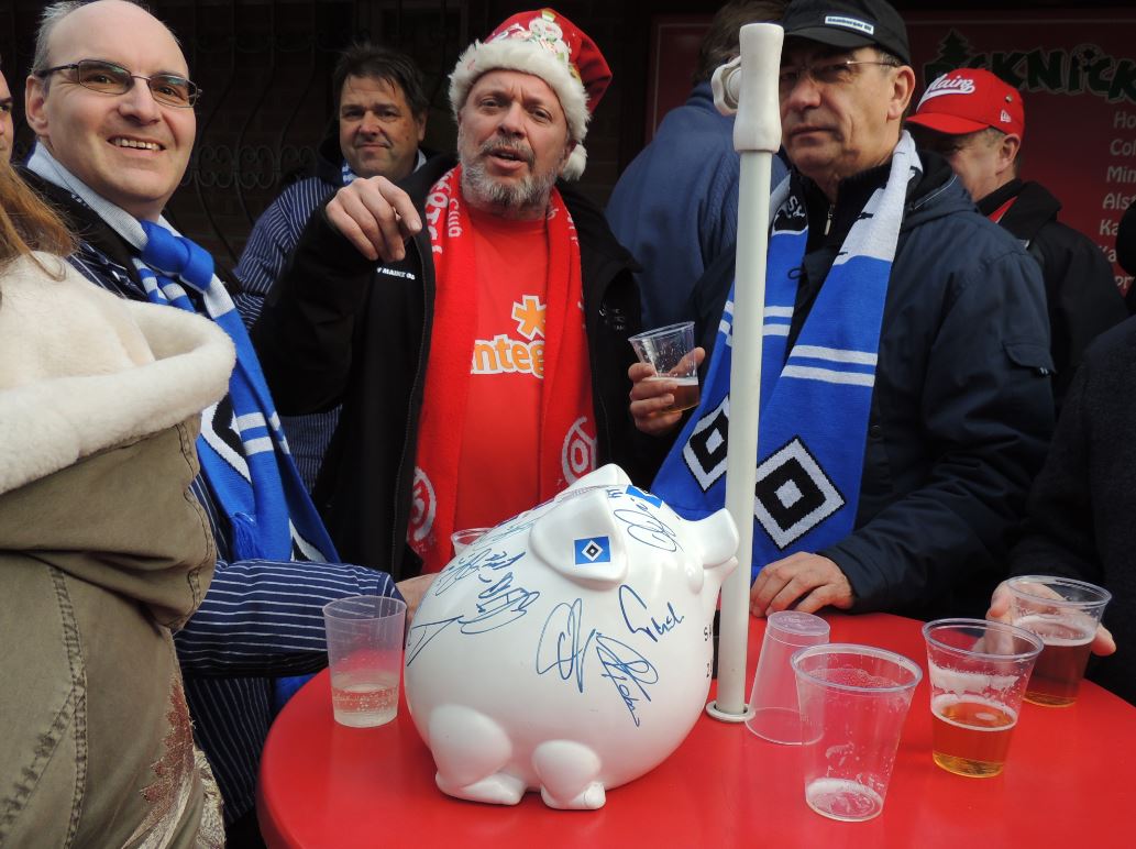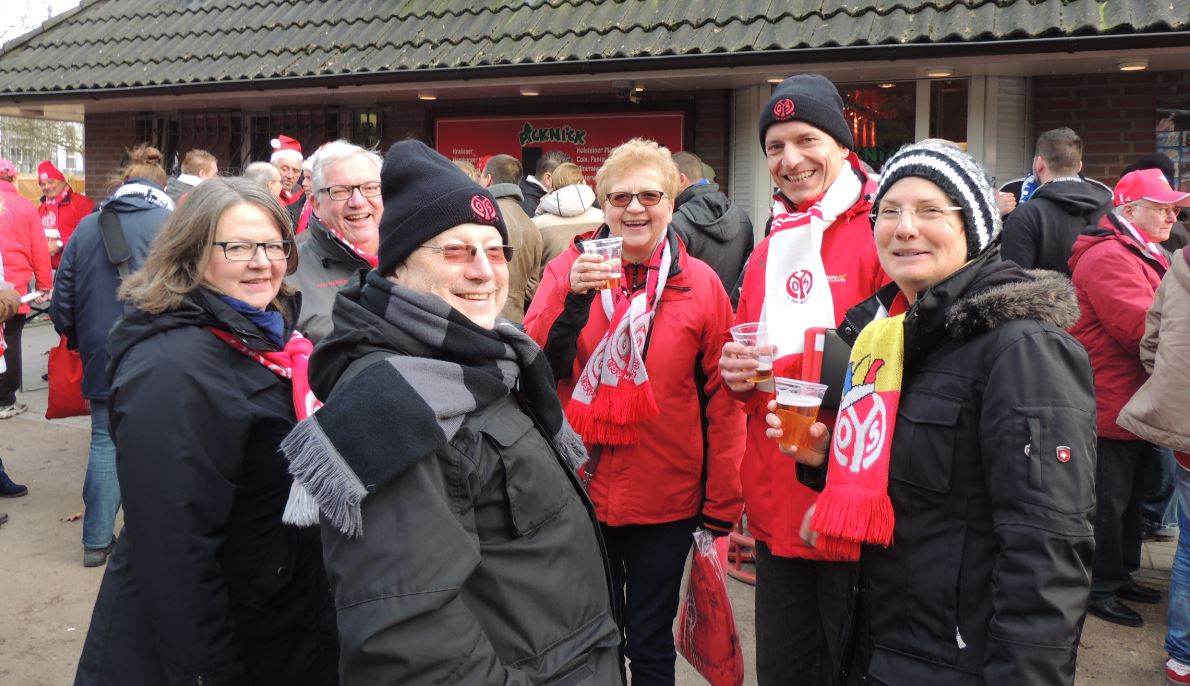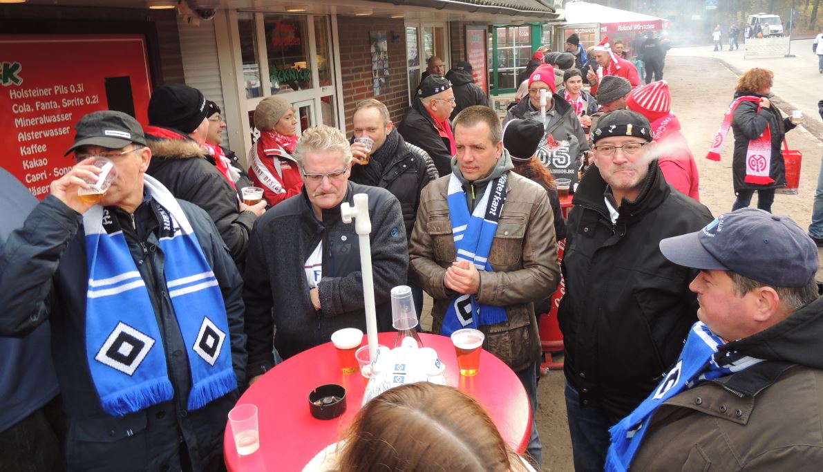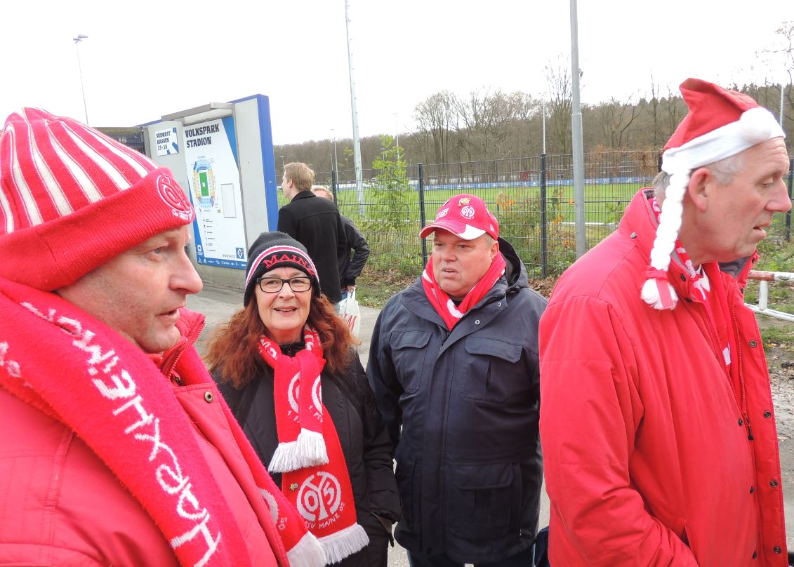 Am Freitag, den 04.12.2015, kamen unsere Freunde vom Mainz-Fanclub "Harxheimer Wingertsknorze" nach Hamburg, um am Samstag das Spiel HSV - FSV Mainz 05 im Volksparkstadion zu gucken. Wie immer waren sie mit einem vollbesetzten Reisebus unterwegs und dazu reisten auch noch einige privat in die schönste Hansestadt von Welt. | |