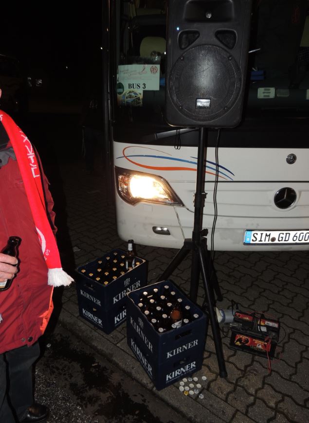 Am Samstagmittag ging es dann mit dem Bus vom Zleep-Hotel an der Königsstraße Richtung Stadion. Dirk war wohl noch nicht so ganz wach... |
