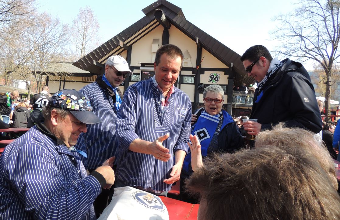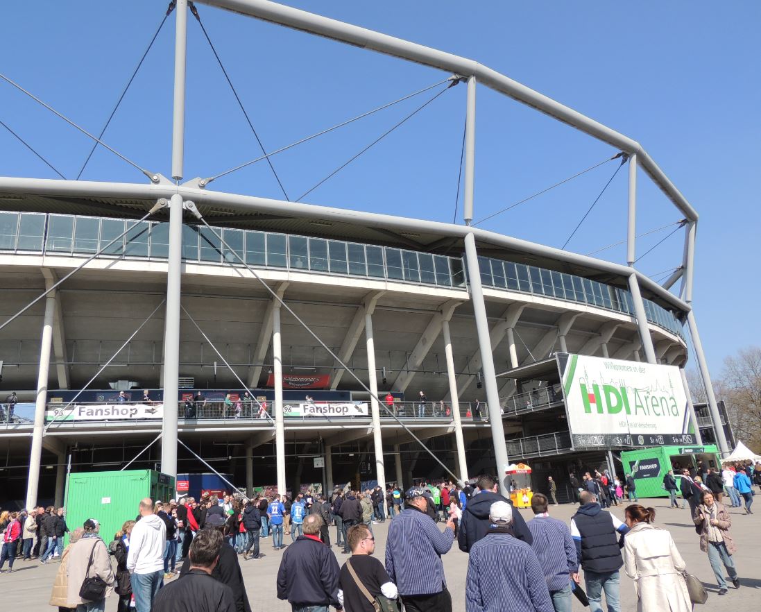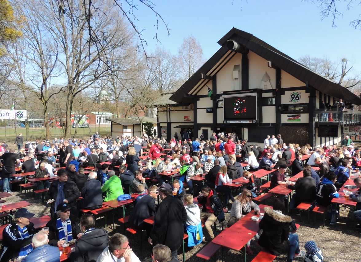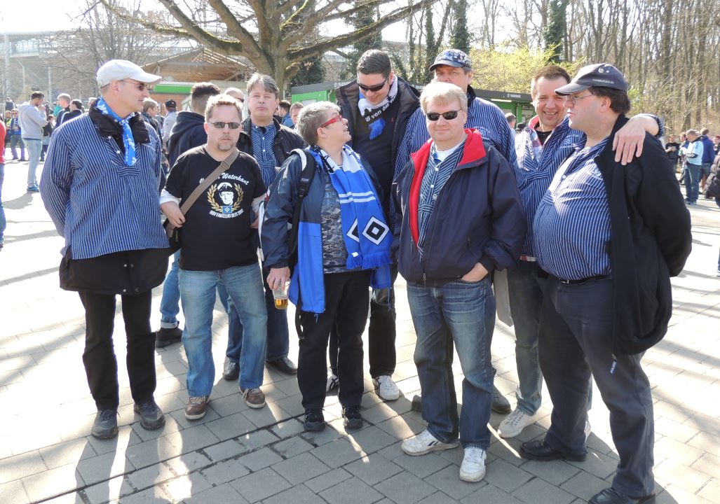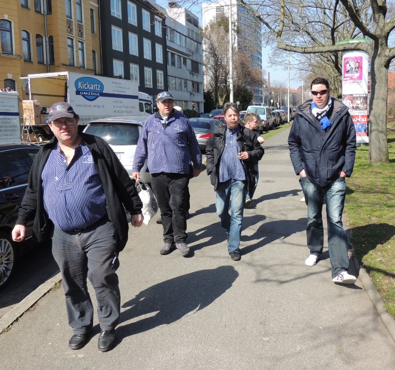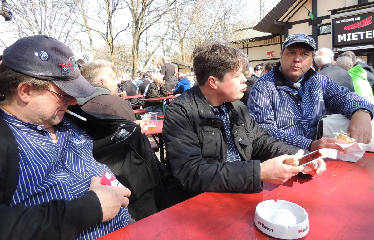 Im Biergarten vorm Stadion stießen dann, die beiden Direktanreisenden Regina Schreiber und Michael Ziglowski dazu. Bei Wurst und Bier fachsimpelten wir bereits über die Aufstellung. Gegen 14 Uhr machten wir uns auf, um dann, ohne übermäßige Kontrollen, zügig ins Stadion zu gelangen. |