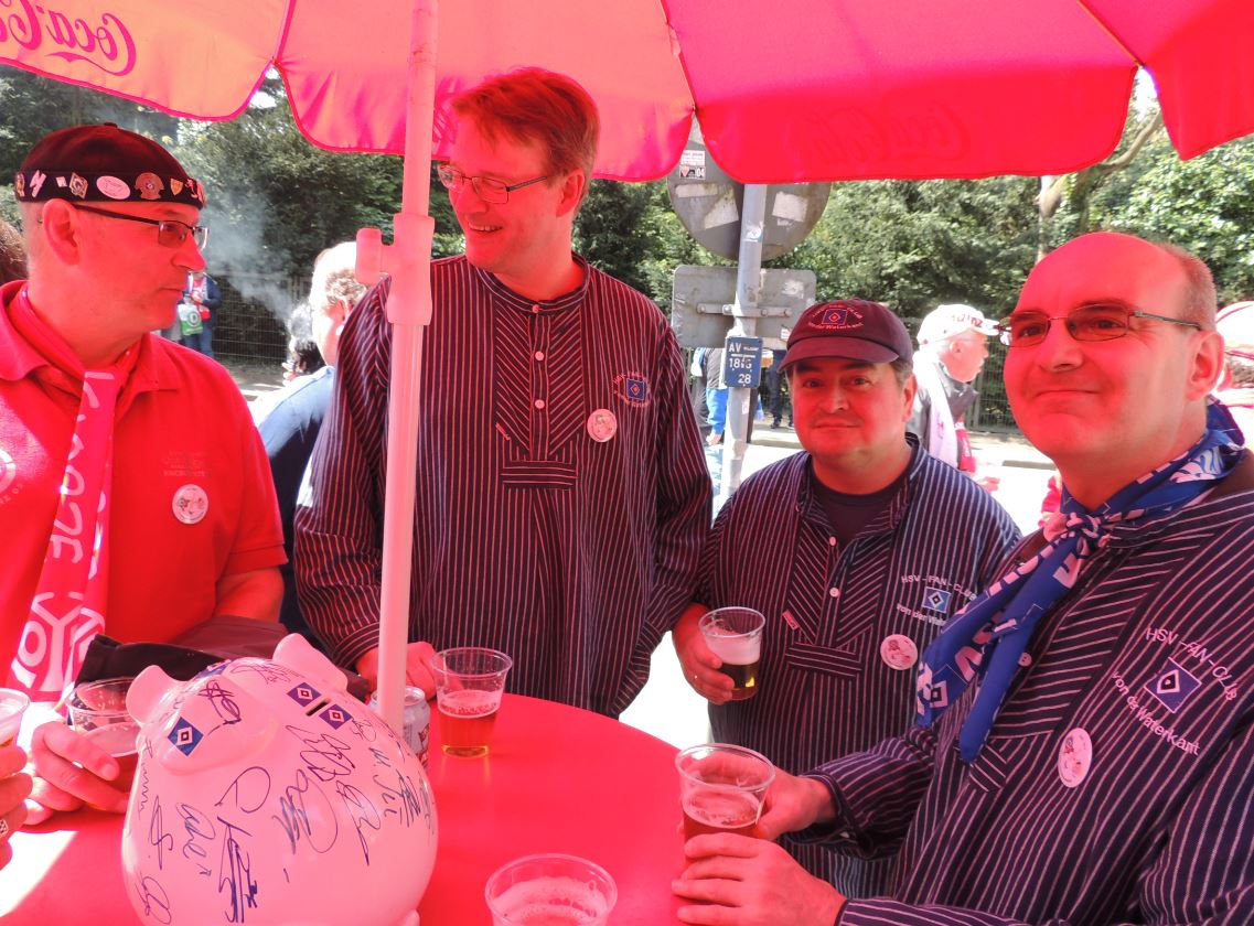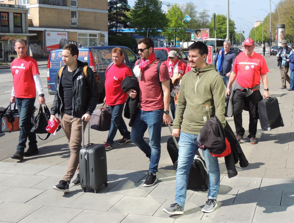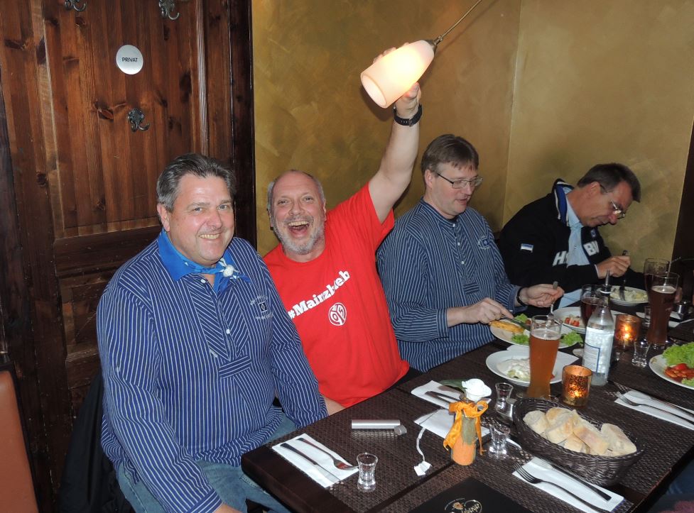 nun schon ins 11. Jahr. Seit November 2006 - hier der Link zum damaligen Bericht - haben wir nun schon unsere Kontakte nach Rheinhessen und haben auch schon des Öfteren bei Wein und Bier an den Spieltagen getroffen. In diesem Jahr besuchten uns unsere Mainzer Freunde - wie immer mit einem ganzen Reisebus - schon am Freitag. Es war in Hamburg das Hafengeburtstagswochenende angesagt und deshalb stand unter anderem auch eine Hafenrundfahrt auf dem Programm. |