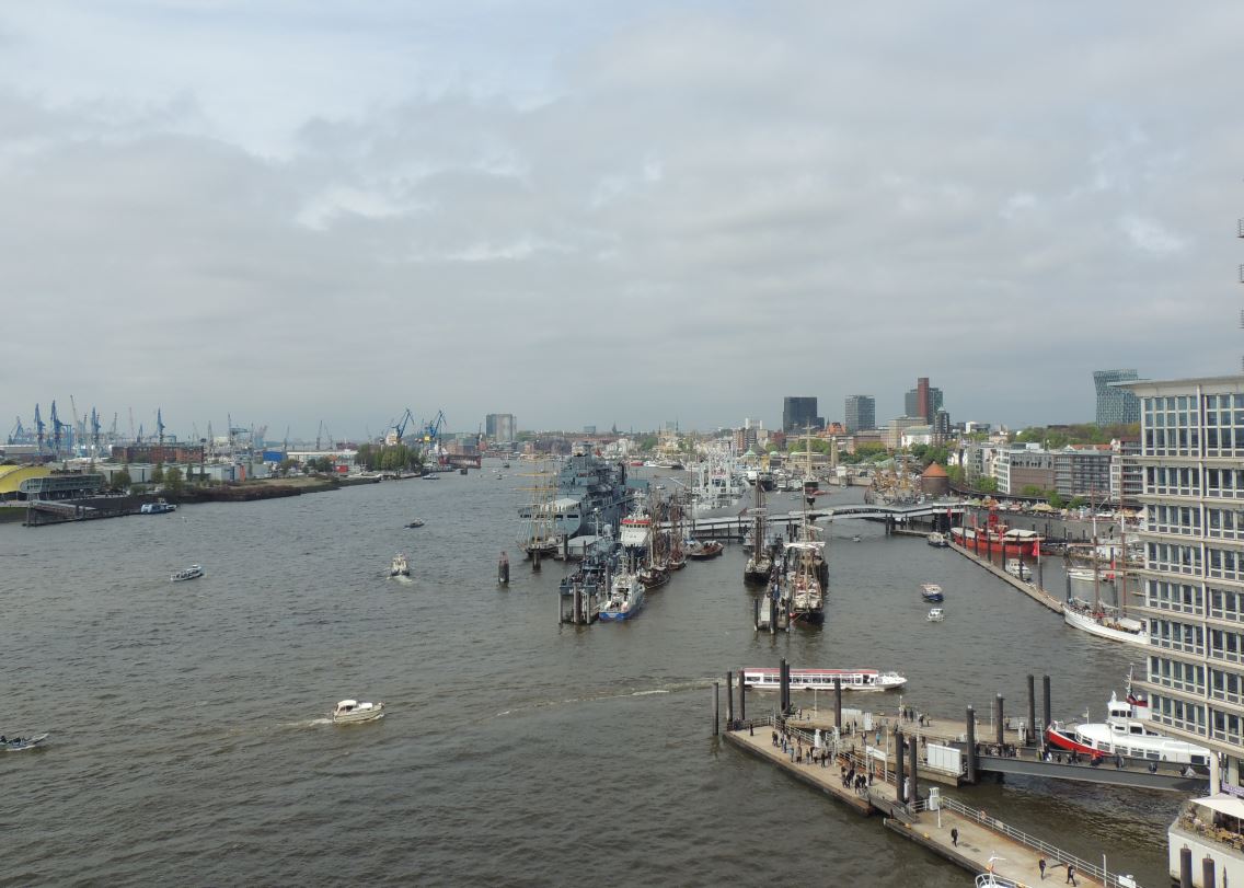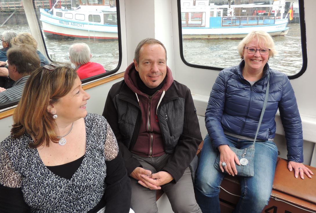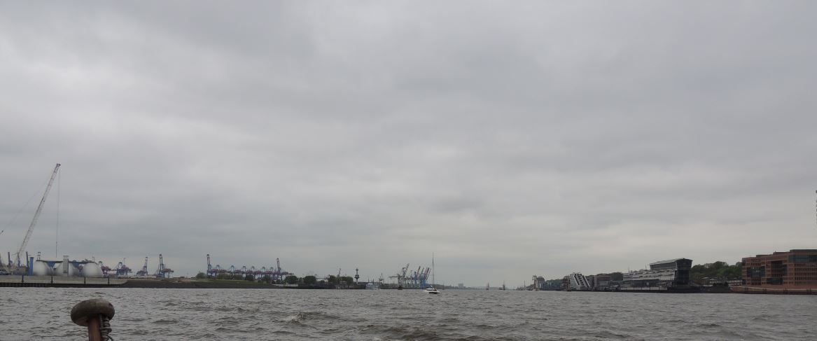 Durch viele interessante Erläuterungen unseres Kapitäns ("...der kleinste Fleet Hamburgs heißt Kleiner Fleet..." oder dass der eine Frachter, den wir sahen mit einem Gartenschlauch zu füllen 30 Jahre in Anspruch nehmen würde) verging die gute Stunde Hafenrundfahrt wie im Fluge. |