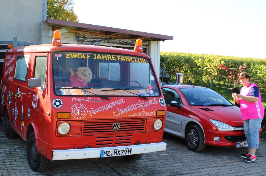 13.10.2017 - Anreise „Alle Mann an Board“ hieß es um 12.15 Uhr für Birger, Birgit, Harald, Michael, Stephan, Sven und mich (Thomas). Damit waren wir nahezu im Plan. Der 9er-Bus bot gut Platz für Mensch, Gepäck und Getränke. Sonne, blauer Himmel bei 20 Grad Celsius, die Anstrengung der Arbeitswoche viel langsam ab und die Vorfreude auf ein schönes Wochenende wuchs spürbar. Einzig die Verkehrslage spielte nicht mit. So hatten wir bereits auf der ersten Etappe eine gute Stunde im Stau gestanden. Mit regelmäßigem „Stoßlüften“ hielt die Stimmung trotzdem. Vielen Dank an Sven! Die Tour nach Mainz führte über Hannover, wo Michael zugestiegen ist. Er wartete am Bahnhof in seiner gewohnt ruhigen und geduldigen Art. Jetzt waren wir vollzählig, also auf nach Harxheim. Die Fahrt: Rush-Hour in Hannover, Baustellen mit und ohne Stau bis Göttingen, danach nur noch Baustellen ohne Stau, ein nachgefüllter Tank, ordentlich Schwung holen im Kreisel vor Harxheim und „schon“ (ca. 19.30 Uhr) waren wir da. Drei Harxheimer Wingertsknörze (Harry, Stefan und Karl-Heinz) erwarteten uns bereits im Restaurant des Weingutes. Bei Weinschorle, Schüttelsalat, Winzer-Steak & Co. wurden kulturelle Besonderheiten ausgetauscht und der Plan für Samstag (Spiel-Vorbereitung, Spiel und Spiel-Nachbereitung) abgestimmt. Satt und zufrieden ging es aufs Zimmer zum Gute-Nacht-Trunk. Wir waren angekommen. |