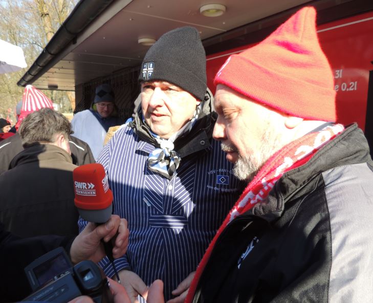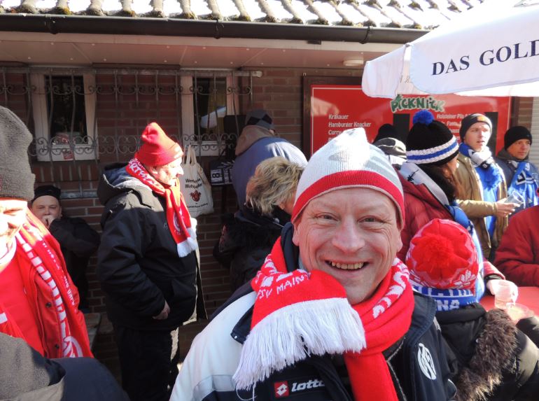 Stefan Diemer - Der Fan des Tages! Harald hatte es irgendwie hinbekommen, dass der größte Wunsch unseres Freundes Stefan in Erfüllung ging. Er wollte schon immer einmal mit Lotto in die Kurve fahren, und "Hamburg meine Perle" live auf der Plattform mitsingen. Stefan ist nicht nur Mainz- sondern auch HSV-Fan und somit auch schon langjähriges Mitglied beim HSV und in unserem Fanclub.