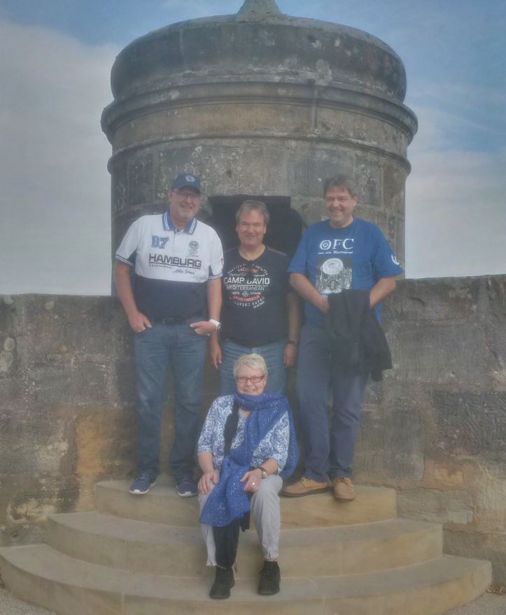 Wir holten dann Rainer (Nestmann) ab, um uns auf den Weg nach Fürth zu machen. Seine Frau Martina empfing uns sitzend, da sie 1 Monat vorher „nur“ umgeknickt ist und sich dabei am Sprunggelenk 2 Bänder sowie das Syndesmoseband durchtrennte und damit nicht genug auch das Wadenbein brach. Wir wünschen dir, liebe Martina, eine schnelle und vor allem vollständige Genesung. Auf der