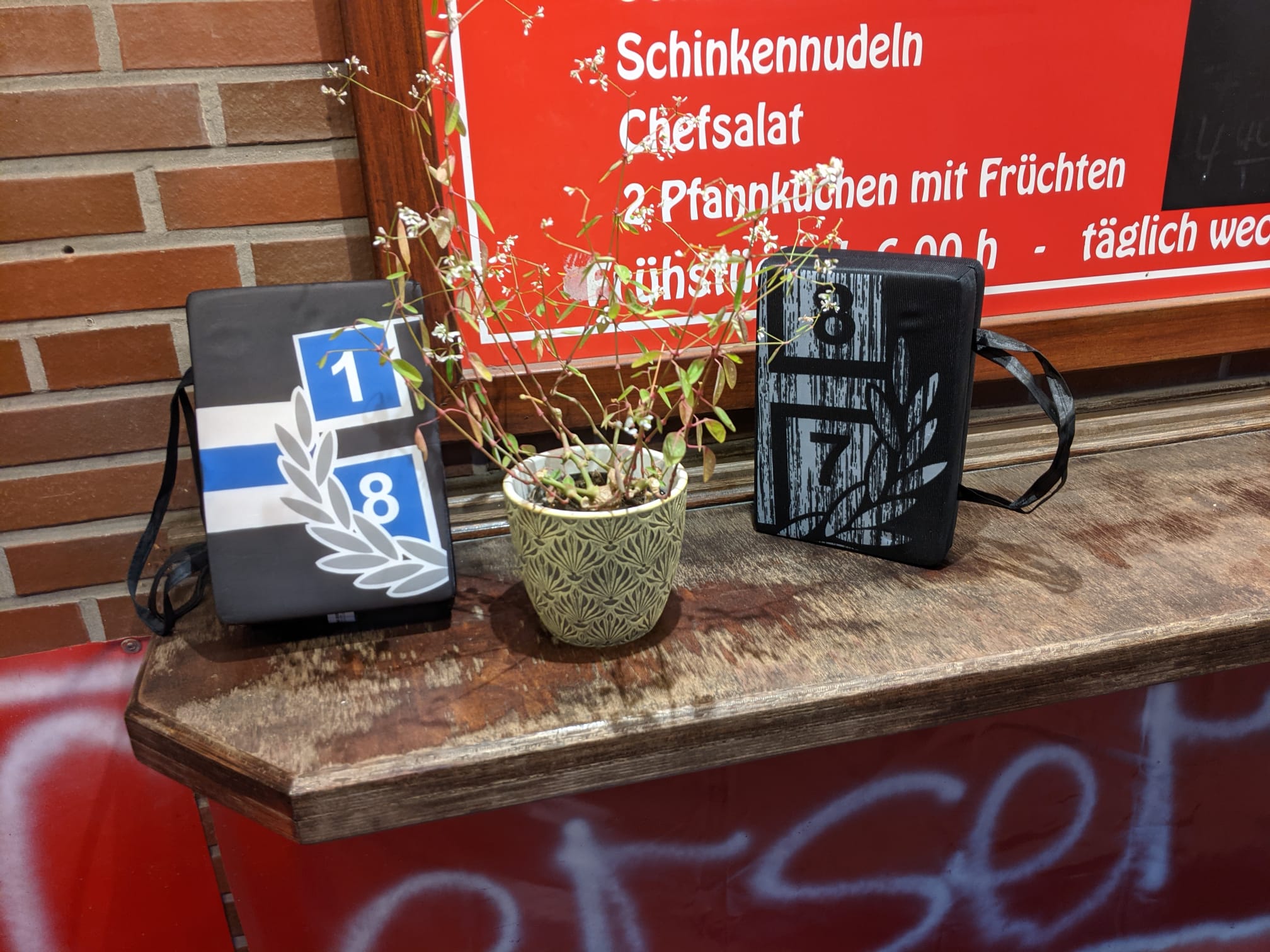 und Tanja Pelz. Unser Stammplatz wurde mit einem Blumentopf etwas