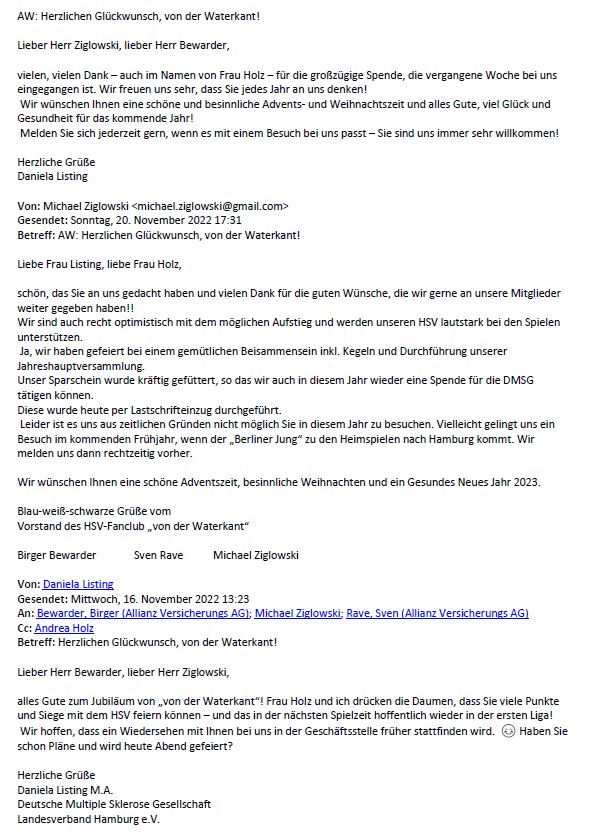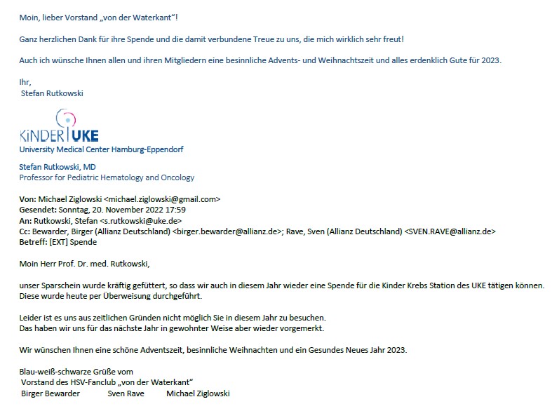 Auch in diesem Jahr konnten wir wieder an das UKE und an die DMSG in einer Gesamtsumme von 450,- € Spenden überreichen: