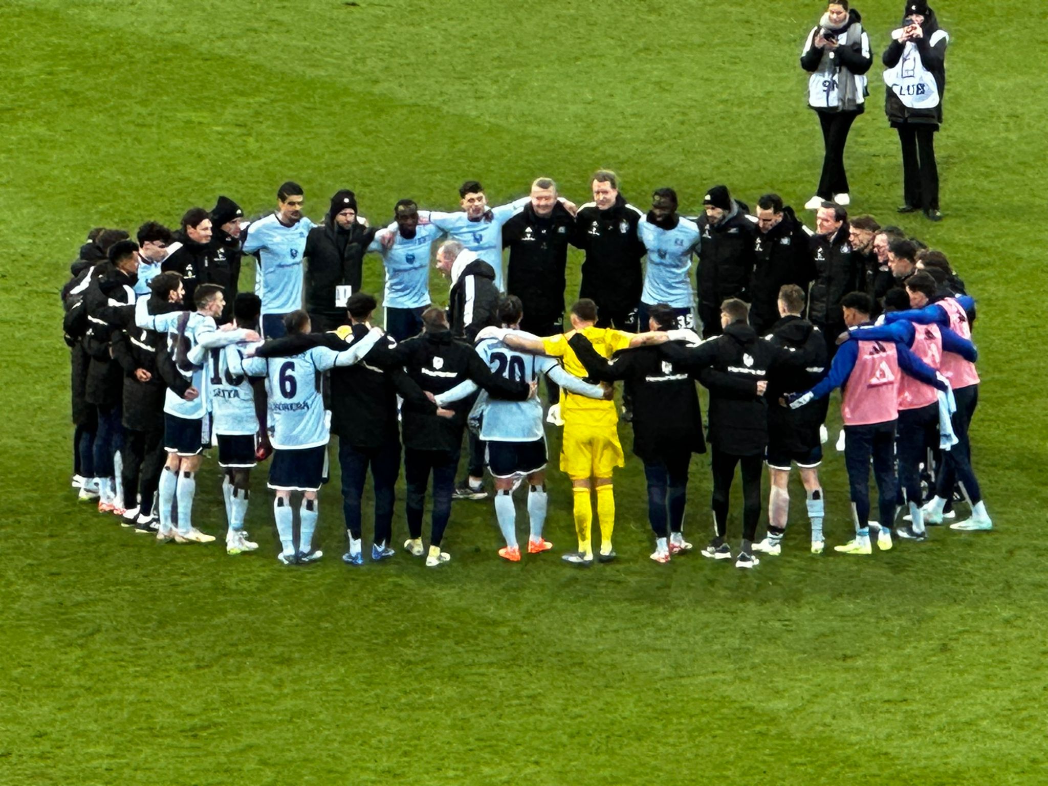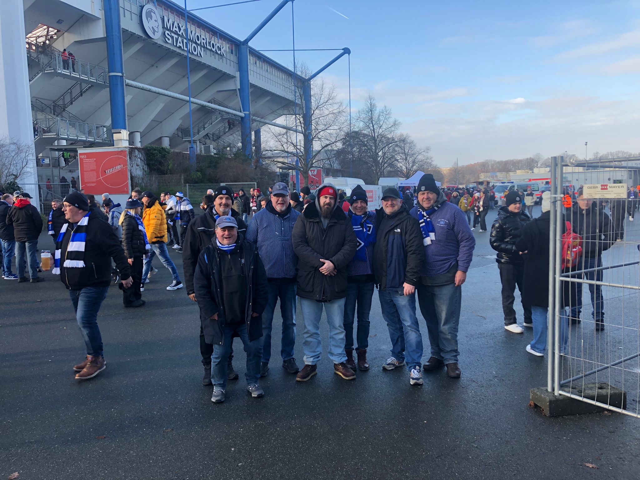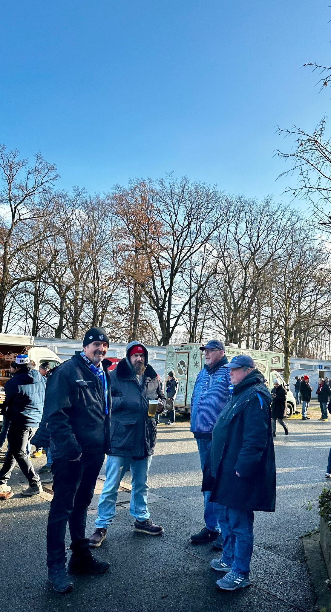 Nach dem Spiel ließen wir uns bei Sonnenschein und einem Kaltgetränk etwas Zeit auf dem Parkplatz, um dann ohne Stau die Heimreise nach Mürsbach anzutreten. Leider war unsere Heimgaststätte „Zur Sonne“ in Mürsbach wieder ausgebucht und so verbrachten wir den Abend erneut im Adler. Der 2. Abend war sowohl in der Gaststätte als auch zum Nachtgetränk in der Pension etwas ruhiger als am Vorabend. Vielleicht eine Altersfrage… Auch am Sonntagmorgen bereitete uns Familie Nestmann ein überragendes Frühstück inkl. Leberkäs. Vielen Dank !!! Das war super!!! So gestärkt ging es dann wieder in alle Himmelsrichtungen heimwärts. Es war übrigens der 1. Auswärtssieg in der 2. Liga bei einer offiziellen Fanclub-Auswärtstour. Was will man mehr zum Jahresausklang.