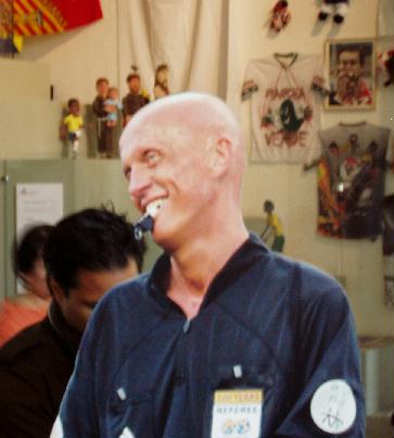 Die anderen Räume sind zu einem Stadionrund umgebaut. Auf, hinter, vor und unter den Tribünen passiert viel. Historische Filmaufnahmen und Fotos rufen Erinnerungen an vergangene WM-Spiele herauf. Im Mittelpunkt ist zunächst das Geschehen auf dem Rasen. Wer sind die Spieler? Man darf sich ein Traumteam zusammenstellen. Und da sind die Fans: Sie sind für den modernen Fußball so wichtig wie das Spiel selbst. Und so widmen wir ihnen und ihrer teilweise überbordenden Kreativität breiten Raum. Fanzimmer aus Brasilien, Niederlande, Schottland, Japan, Mexiko und der Türkei laden zu einem Spaziergang durch die Welt der Fußballfans ein. Immer wieder aber geht der Blick zwischendurch auf's Spiel. In der reich dekorierten Fankurve endet die Ausstellung, hinter dem großen Fußballtor. Jetzt bleibt nur noch die große Stille in der angrenzenden Buddhismus-Ausstellung: "Buddhismus und Fußball haben viel gemeinsam" erklärt freundlich lächelnd ein tibetischer Mönch am Eingang und schießt einen Ball los. Aber vielleicht gehen die frohgemuten Fans noch eine Runde Tischfußball oder eines der anderen Spiele in der Ausstellung spielen - vielleicht bleibt's aber auch bei einem "Absacker" in der Fußballkneipe und bei einer Currywurst...