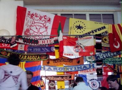Die Ausstellung ist gepiekt mit Fanschals, Bannern, Flaggen und auch einigen Pins. Alles was das Fanherz begehrt. | |