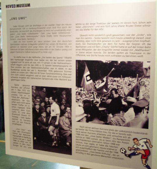 Im 1. OG im Völkerkundemuseum ist auch ein kleine Ausstellung, die sich nur mit unserem HSV beschäftigt. Leider ist dieser Teil - eine Leihgabe aus dem HSV-Museum - sehr bescheiden ausgefallen. Hier ein paar Bilder davon. | |