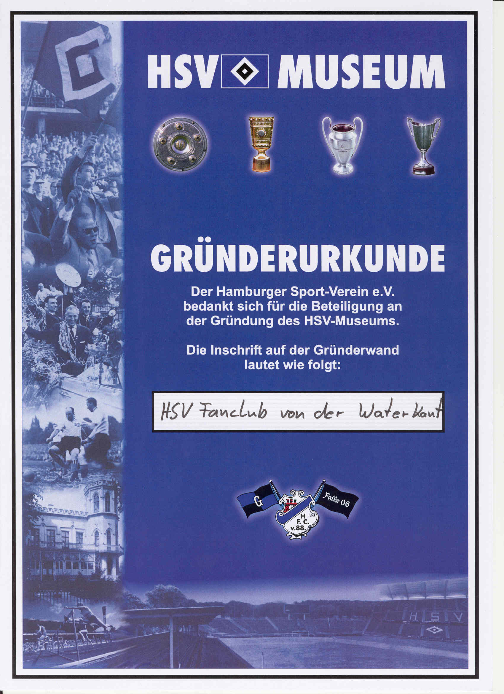 Gründerurkunde zum HSV Museum.