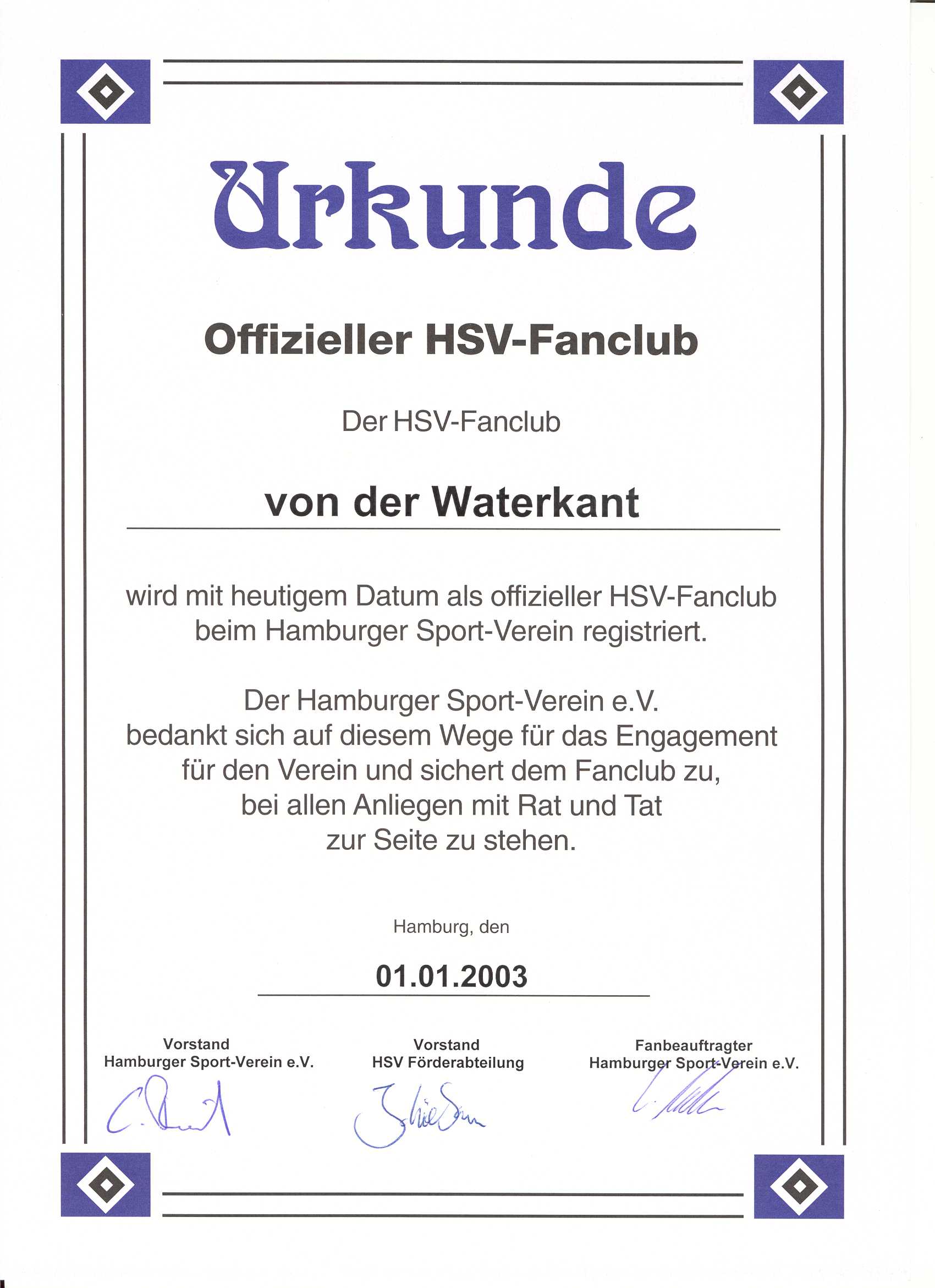Als einer der ersten HSV-FAN-CLUBs, haben wir anlässlich unseres ersten